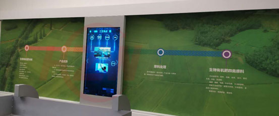 首先将展墙上放置上想要展示的图片,在相似坐标轴的展墙上镶嵌各种内容彩页,一起制造一组可滑动的机械构造以悬挂液晶显示屏,可以推进液晶显示屏,经过控制器设备找寻布景中的感应位置点,当推进液晶显示屏到某个位置,软件根据所设定位置自动播放好的视频内容。